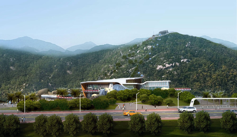 通过人行通道穿达海滨路,有效组织人行流线,解決现状人车交织情況。设置车行通道串联海滨路与情侣路的车行交通,空中栈道连接杨匏安纪念广场及望海楼,打造历史文脉走廊,同时栈道具有观赏性、体验性,文化性。升级原有的索道缆车,连接山顶和山脚人流,过街天桥横跨情侣路,连接建筑与沙滩,打造人行立体交通。